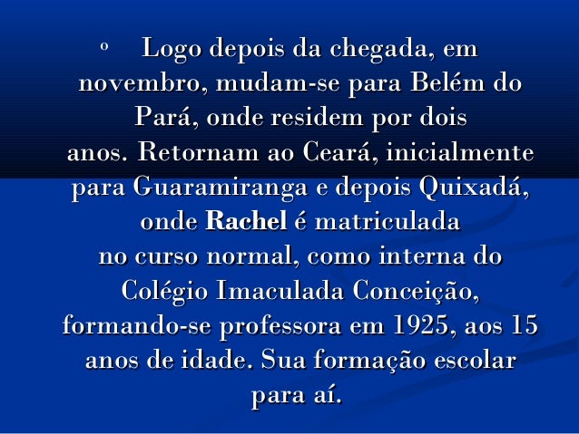 Rachel De Queiroz https://pt.slideshare.net/josielewalter/rachel-de-queiroz-15271381