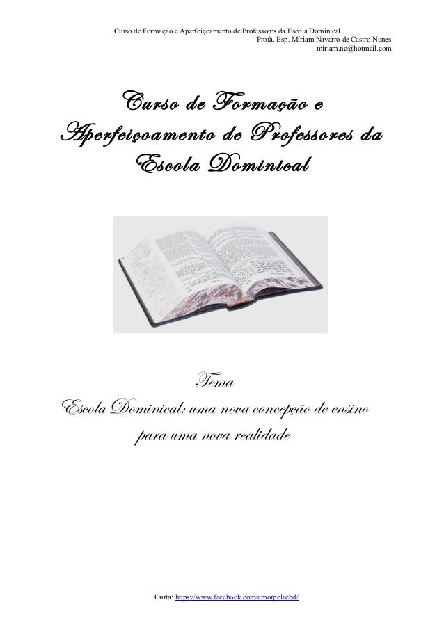Apostila De Curso De Formação De Professores Da Escola Dominical https://www.slideshare.net/MiriNav/apostila-de-curso-de-formao-de-professores-da-escola-dominical
