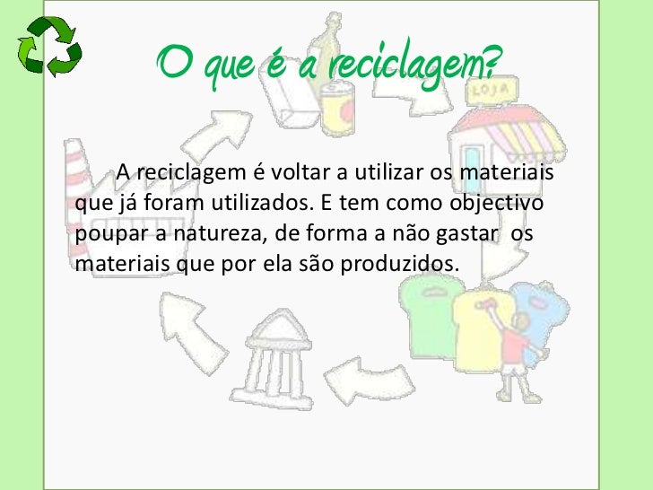 A Reciclagem https://pt.slideshare.net/cagasslb/a-reciclagem-8125817