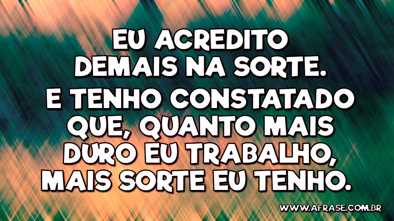 Frases de sorte não é sorte é deus. Encontre dezenas de frases de trabalho com imagens para copiar e compartilhar. Quanto mais eu trabalho com mais sorte eu fico.
